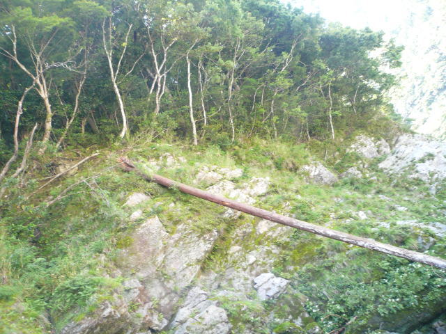 2008年6月14日 ツアー通過後に、何人かでロープなどで倒木を傾け、岩のくぼみを利用するなど、より安定化を図られたようです。