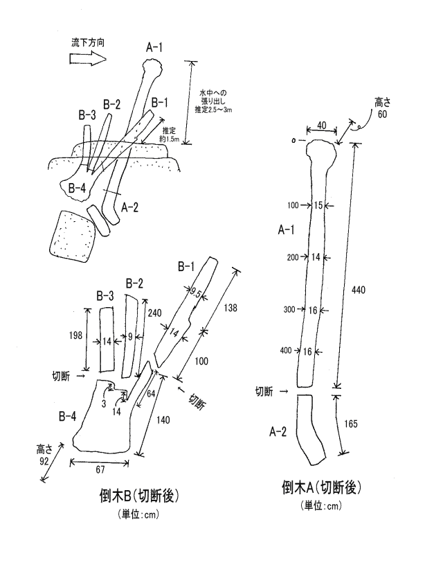 写真/倒木Aの一部(向かって下。右側が川に突き出ていた部分)と